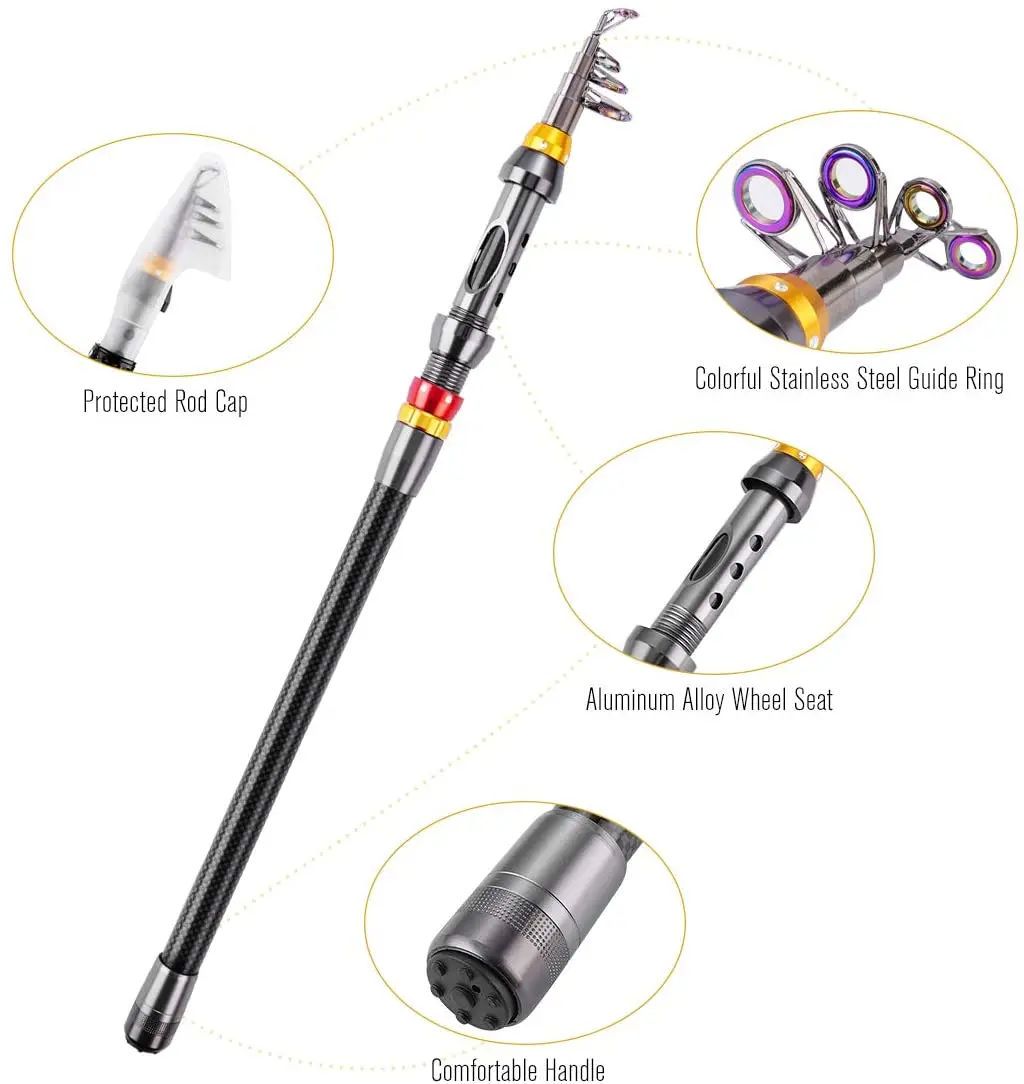 0 Response to "Top !! 2021 Fishing Rod kit Carbon Fiber Telescopic Fishing Pole and Reel Combo with Line Lures Tackle Hooks Reel Carrier Bag"