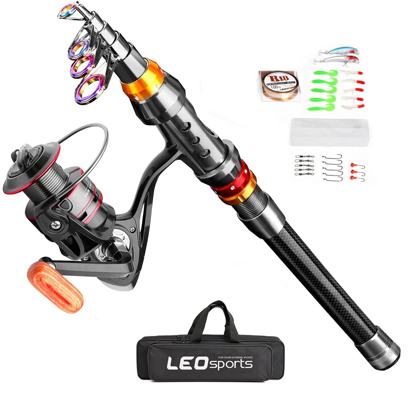 Top !! 2021 Fishing Rod kit Carbon Fiber Telescopic Fishing Pole and Reel Combo with Line Lures Tackle Hooks Reel Carrier Bag